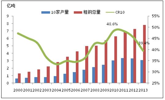 產(chǎn)業(yè)集中度過低,首先會加劇企業(yè)間的無序競爭,減弱了企業(yè)在價格上的談判能力,導(dǎo)致盈利能力減弱;其次,會拉低中國鋼材的整體品質(zhì)和檔次,一旦產(chǎn)業(yè)集中度提高了,企業(yè)會有更多的精力和資金來升級加工裝備,研究出品質(zhì)更好的鋼材,提高中國在國際貿(mào)易中的競爭力;第三,生產(chǎn)的過度分散會造成資源的極大浪費,帶來更多的環(huán)境污染,進一步降低中國的產(chǎn)能利用能力。所以為了鋼鐵行業(yè)的健康發(fā)展,我們必須要進行產(chǎn)業(yè)結(jié)構(gòu)的整合,鋼鐵企業(yè)重組勢在必行。