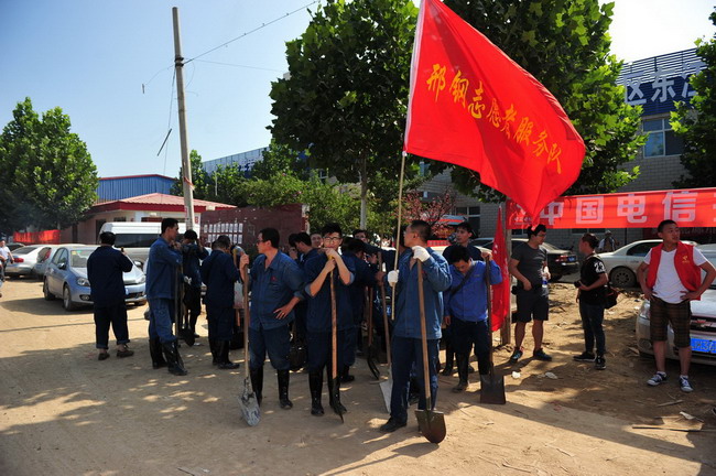 7月25日,由邢鋼公司線材精制公司、新翔公司、新光實業(yè)公司、新光物業(yè)公司精干人員組成的救援隊,趕赴災情嚴重的趙麻村,來到受災村民家中,冒著酷暑,幫助老鄉(xiāng)清理淤泥、搬運物資。連日來,邢鋼共出動人員近1000人次、機械設備10余臺次,投入到清淤工作中。線材精制公司主動承擔了為晏家屯救災人員每天供應100份午餐的工作任務。7月26日,邢鋼又抽調骨干人員組成“邢鋼志愿者服務隊”,攜帶鐵锨等工具,趕赴受災最為嚴重的開發(fā)區(qū)東汪鎮(zhèn)大賢村,幫助村民進行災后清淤。