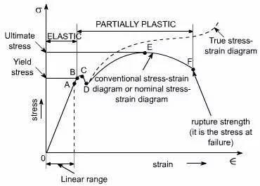 對于可以發(fā)生拉伸塑性變形的材料,最常用的有兩類曲線:工程應(yīng)力-工程應(yīng)變曲線和真應(yīng)力-真應(yīng)變曲線。它們的區(qū)別在于計(jì)算應(yīng)力時(shí)采用的面積不同,前者用樣品的初始面積,后者用拉伸過程中的實(shí)時(shí)橫截面積。因此,在應(yīng)力-應(yīng)變曲線上,真應(yīng)力一般比工程應(yīng)力高。