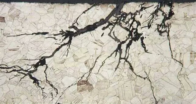 應(yīng)力腐蝕開裂是奧氏體不銹鋼最常見的破壞形式。大家需要注意,應(yīng)力腐蝕開裂取決于兩方面主要因素:其一,必須有應(yīng)力,它可能是外加應(yīng)力,也可能是殘余應(yīng)力;其二,應(yīng)力腐蝕開裂敏感離子,比如鹵族元素離子,尤其以氯離子最為常見。應(yīng)用奧氏體不銹鋼的地方,時常不是使用其承受應(yīng)力的能力,因此應(yīng)該特別關(guān)注殘余應(yīng)力,因為在含有氯離子的環(huán)境中,殘余應(yīng)力會造成其應(yīng)力腐蝕開裂。去殘余應(yīng)力的方法是去應(yīng)力退火。
