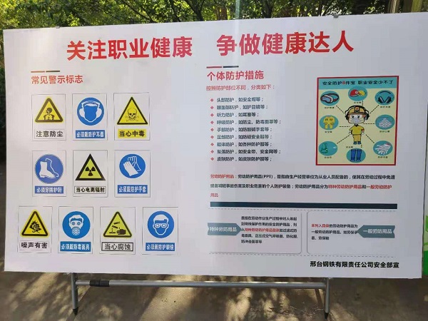 4月25日起,邢鋼組織開展了以“共創(chuàng)健康中國,共享職業(yè)健康”為主題的系列宣傳活動, 各單位高度重視、廣泛發(fā)動,面向重點崗位員工,采取線上、線下相結(jié)合的方式,充分利用班前班后會以及“報、網(wǎng)、端、屏”等各類媒體平臺,以及職業(yè)健康公開課、職業(yè)病專題防治談心等形式,開展多種形式的職業(yè)健康教育活動,整體提高職工的職業(yè)衛(wèi)生素質(zhì)。