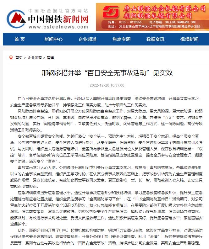 自百日安全無事故活動開展以來,邢鋼從深入基層開展風險隱患排查、組織安全管理培訓、開展事故警示學習、安全生產應急演練等多措并舉,持續(xù)強化工作落實力度,助推專項活動工作見實效。