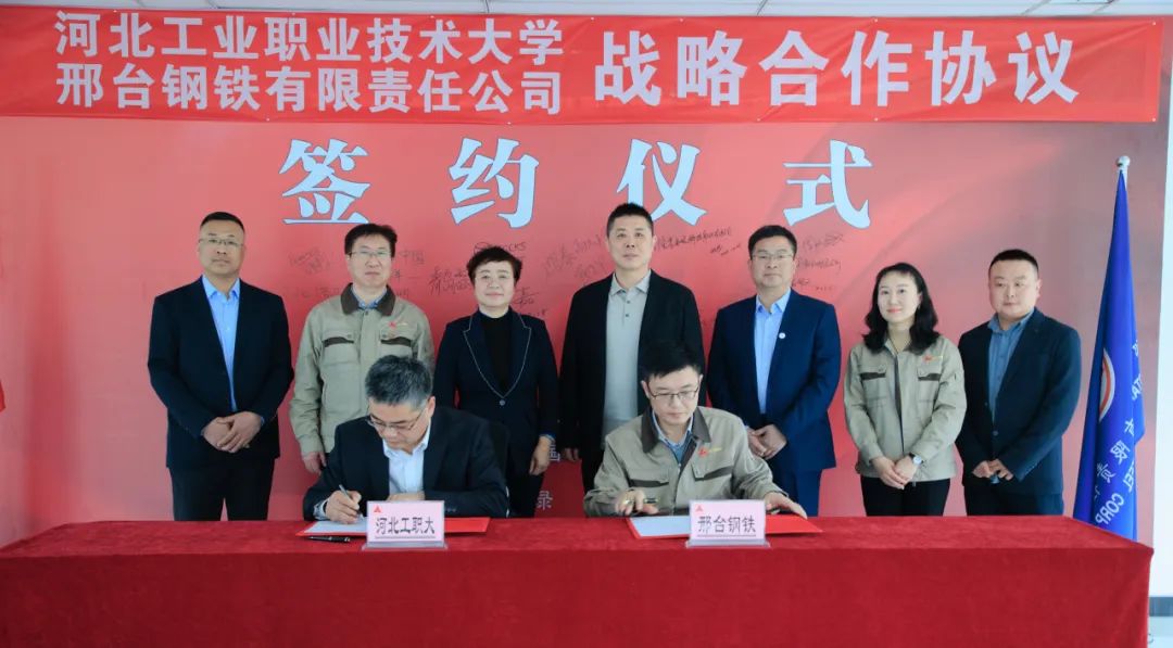 在與會人員的共同見證下,雙方代表簽訂了校企合作協(xié)議。還分別進(jìn)行了“河北工業(yè)職業(yè)技術(shù)大學(xué)大學(xué)生就業(yè)基地”、“河北工業(yè)職業(yè)技術(shù)大學(xué)實(shí)踐教學(xué)基地”、“邢臺鋼鐵有限責(zé)任公司人力資源培訓(xùn)基地”授牌互認(rèn)。