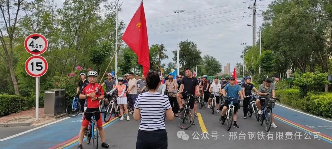 近日清晨,參加邢臺市總工會“泉城騎行,工潤邢襄”騎行活動的55名邢鋼職工,在七里河健身綠道上整隊待發(fā),隊伍中迎風招展的邢鋼旗幟引人注目。7:30,隨著主持人一聲“出發(fā)”指令,在領騎者帶領下,騎行隊伍開始了鍛煉身體、磨練意志、放松心情的健康之旅。