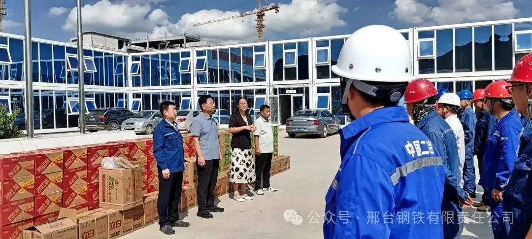 新廠房里,起重機(jī)下,工人們正一絲不茍地進(jìn)行設(shè)備安裝、調(diào)試。8月22日,邢臺(tái)市總工會(huì)黨組成員、經(jīng)審委主任龐蘇、威縣總工會(huì)主席岳朝軒等一行來(lái)到邢鋼搬遷項(xiàng)目建設(shè)工地,為連日來(lái)被潮熱天氣“烤驗(yàn)”的建設(shè)者們送來(lái)“清涼”大禮包和真摯的慰問(wèn)。公司副總經(jīng)理馬保良出席了“送清涼”慰問(wèn)品發(fā)放儀式。