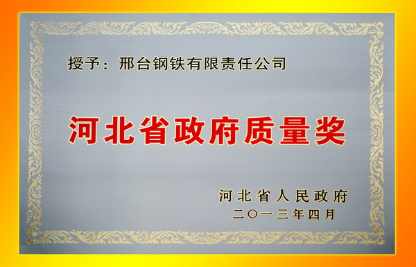 Xingtai Steel Was Awarded Hebei Government Quality Award 2…