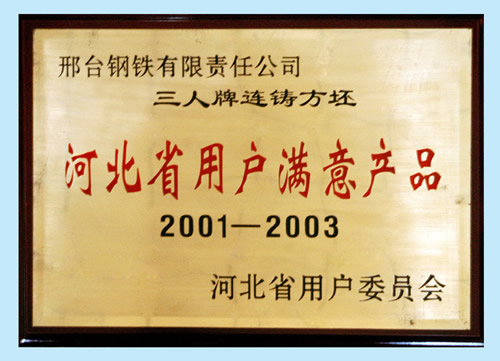 三人牌連鑄方坯被評(píng)為河北省用戶滿意產(chǎn)品
