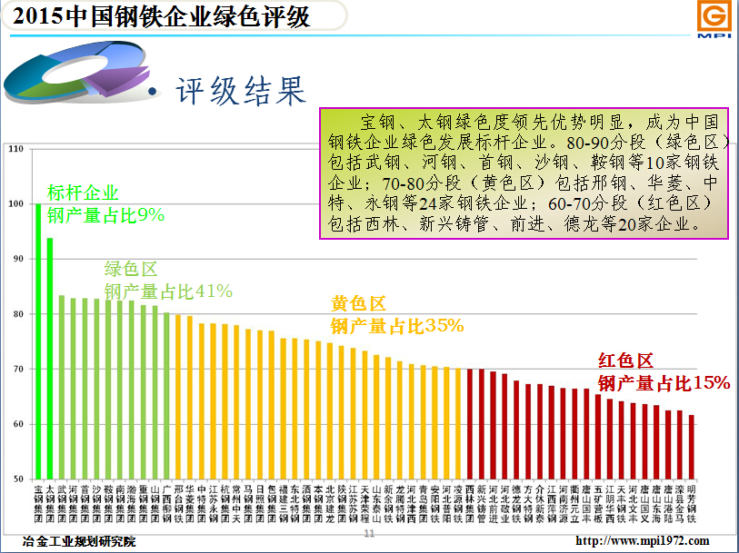日前,冶金工業(yè)規(guī)劃研究院、環(huán)境保護(hù)部環(huán)境工程評(píng)估中心聯(lián)合公布2015年中國(guó)鋼鐵企業(yè)綠色評(píng)級(jí)結(jié)果,邢臺(tái)鋼鐵有限責(zé)任公司位列第13名。