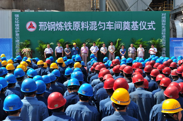 6月9日上午,邢鋼在煉鐵廠原料混勻車間舉行了全封閉式料場奠基儀式。混勻料場全封閉工程是邢鋼2015年實施的14項環(huán)境深度美化治理重點項目之一,邢鋼還將進一步實施噴吹煤全封閉料倉、無組織揚塵面源封閉、廠容廠貌深度治理等一系列環(huán)保項目。