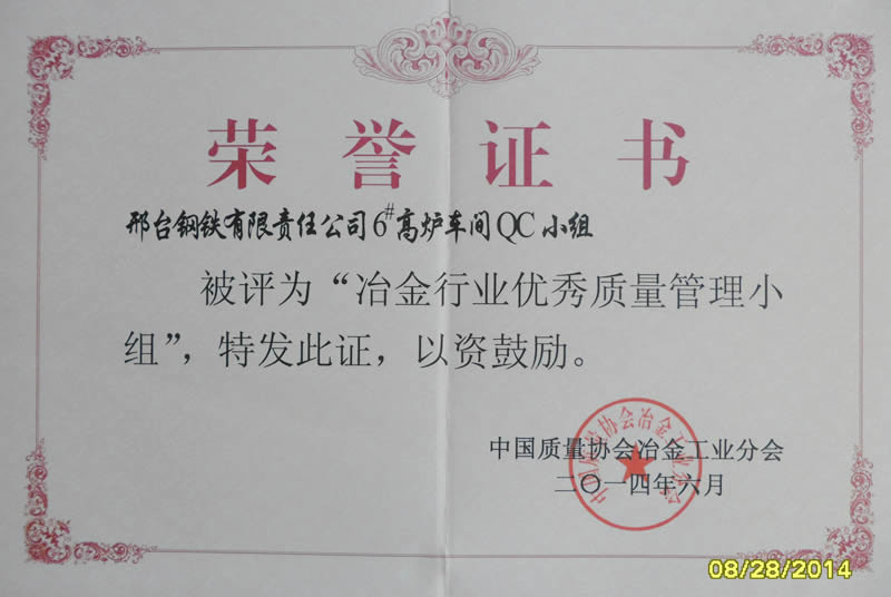 邢鋼質(zhì)量管理小組成果獲獎再創(chuàng)佳績