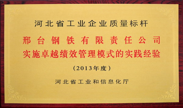 邢鋼實施卓越績效管理模式的實踐經(jīng)驗獲省工業(yè)企業(yè)質(zhì)量標(biāo)桿