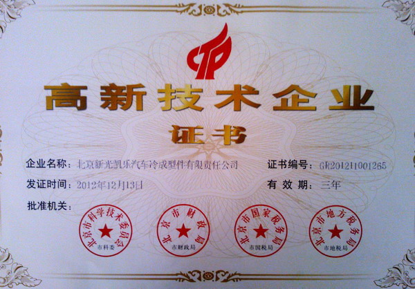 日前,北京新光凱樂公司榮獲國家高新技術(shù)企業(yè)稱號(hào),同時(shí)取得國家高新技術(shù)企業(yè)證書。