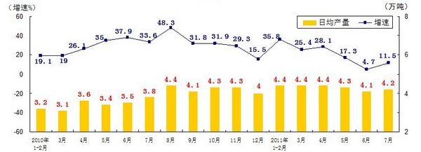 2011年7月份規(guī)模以上工業(yè)生產主要數據
