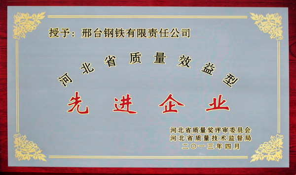 邢鋼線材(盤條)獲省名牌產(chǎn)品 公司獲省質(zhì)量效益型先進企業(yè)