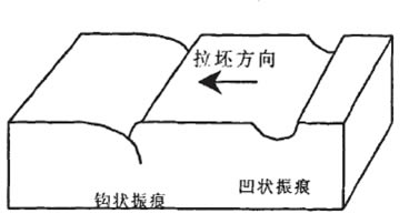 通過對不同連鑄條件下鑄坯表面撮痘進(jìn)行金相分析,最常見的振痕形態(tài)基本上可分為兩種:凹陷狀振痕和鉤狀振痕,其典型的形貌如下圖所示。