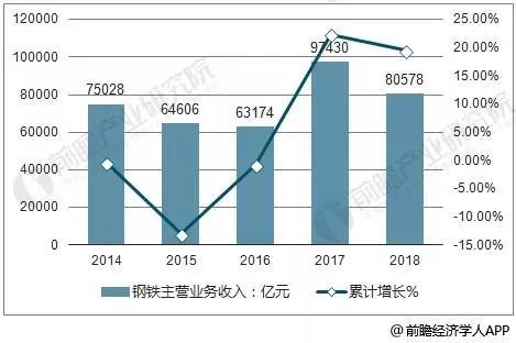 據(jù)前瞻產(chǎn)業(yè)研究院發(fā)布的《中國鋼鐵行業(yè)發(fā)展前景與投資戰(zhàn)略規(guī)劃分析報(bào)告》指出,2018上半年中國鋼鐵行業(yè)主營業(yè)務(wù)收入達(dá)到30525億元,累計(jì)增長15.8%。回顧2012-2017年鋼鐵行業(yè)營業(yè)收入情況:近六年來,我國鋼行業(yè)營業(yè)收入較為穩(wěn)定,2015年以來累計(jì)增長率逐漸回暖。中國鋼鐵行業(yè)將繼續(xù)保持穩(wěn)中有長趨勢,預(yù)計(jì)2018年中國鋼鐵行業(yè)營收將突破80000億元。