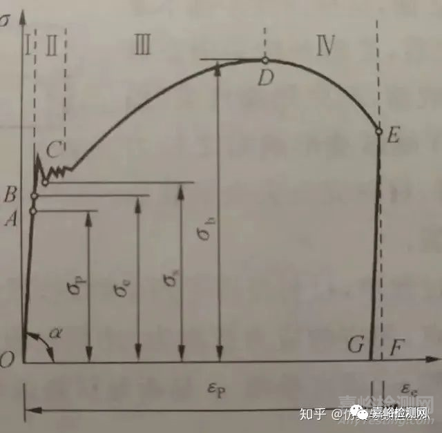 通過(guò)對(duì)上述關(guān)于強(qiáng)度和剛度的理論理解,相對(duì)于剛度,強(qiáng)度的定義針對(duì)的是外力作用下的破壞,而破壞類(lèi)型的分類(lèi)為塑形屈服及脆性斷裂,由此聯(lián)想到拉伸時(shí)的應(yīng)力應(yīng)變曲線(xiàn)。如圖所示。