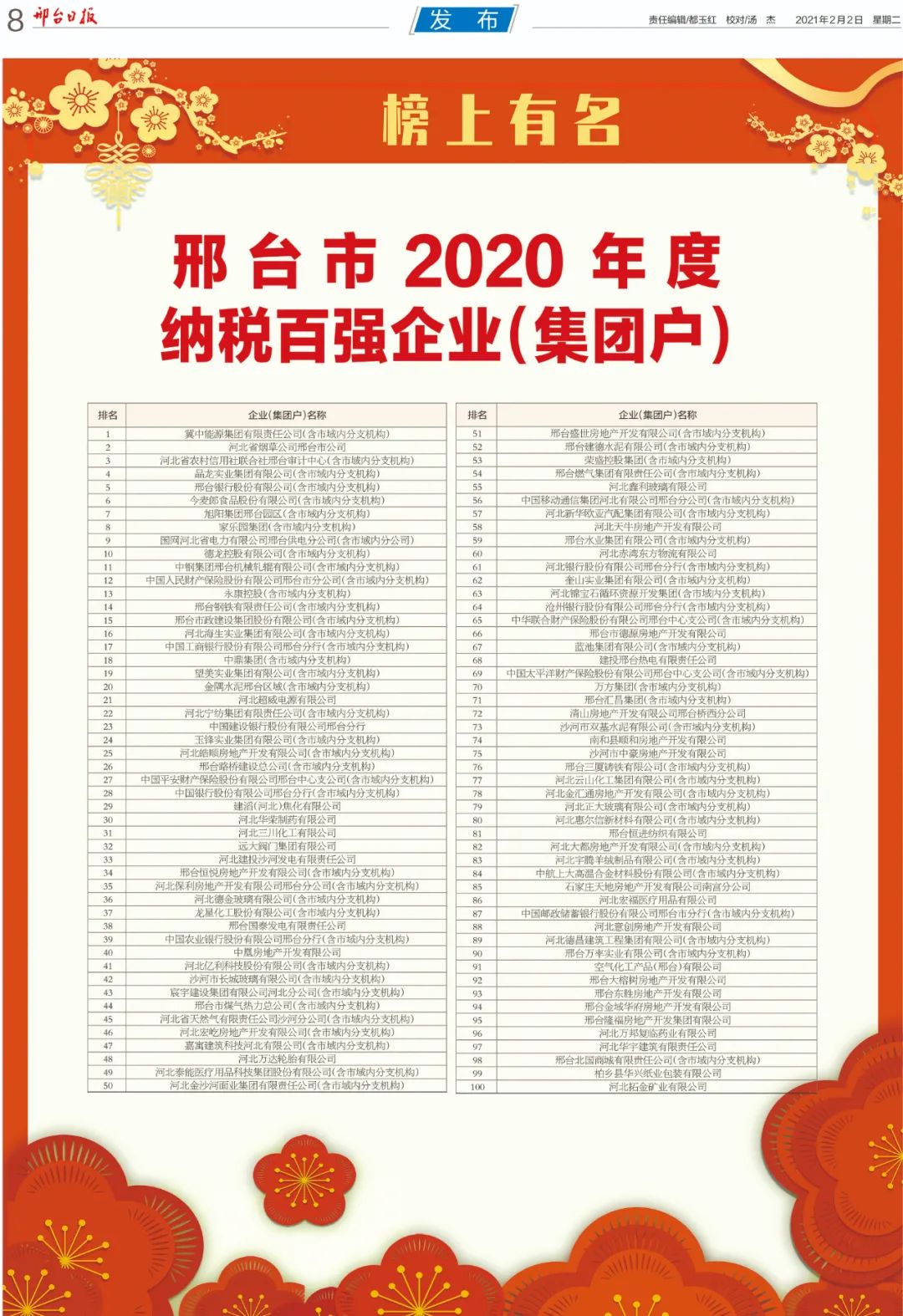 Recently, Xingtai released the top 100 list of “Tax Paying Enterprises in Xingtai 2020” and Xingtai Steel ranked 14th.