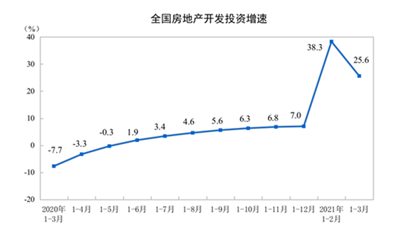 2021年1-3月全國房地產(chǎn)開發(fā)投資同比增長25.6%