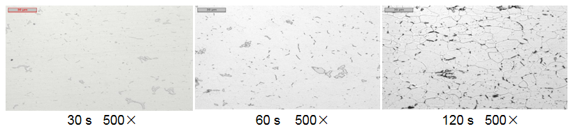 不同浸蝕時間的影響(滲碳體,采用4%苦味酸浸蝕)