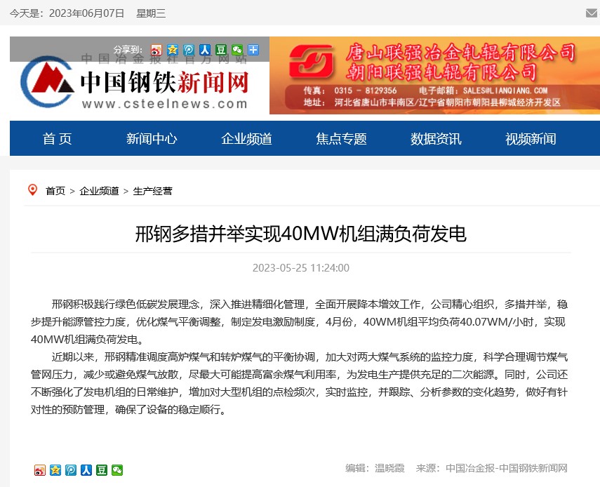 邢鋼多措并舉實現(xiàn)40MW機組滿負荷發(fā)電