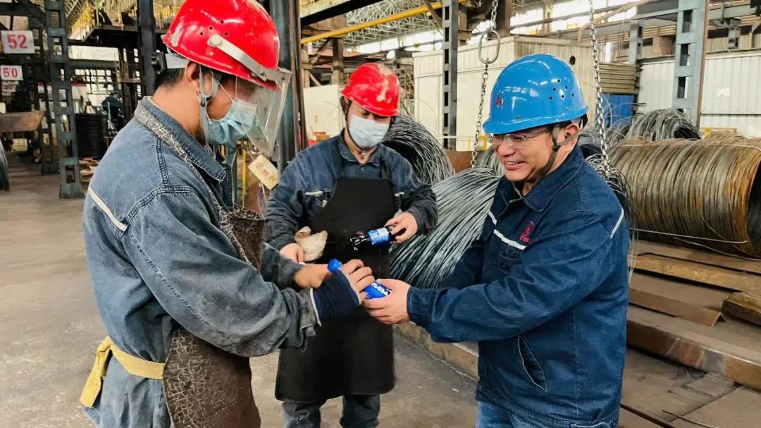 入夏以來(lái),持續(xù)出現(xiàn)高溫天氣,炎炎夏日,揮汗如雨。為保障一線(xiàn)員工的身體健康,近日,由線(xiàn)材廠廠長(zhǎng)孔令波帶隊(duì)到生產(chǎn)線(xiàn)高溫崗位為員工送清涼,為堅(jiān)守在生產(chǎn)一線(xiàn)員工送去了飲料、西瓜等防暑降溫食品,并對(duì)員工工作、身體情況進(jìn)行慰問(wèn)。
