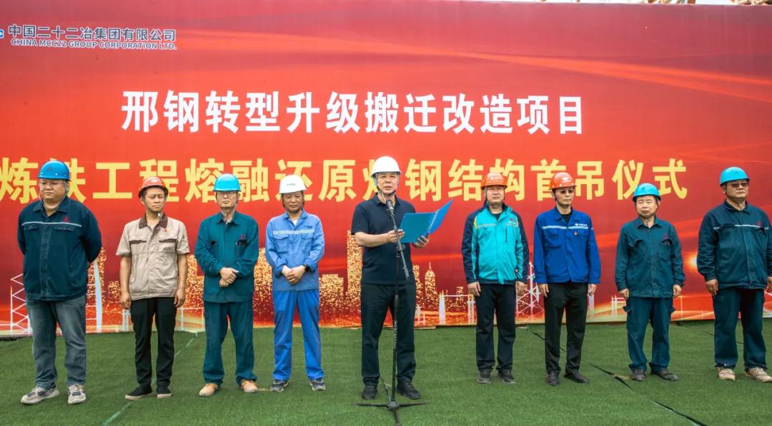 7月8日上午11時,威縣項目地?zé)掕F區(qū)域彩旗招展、掌聲雷動,邢鋼轉(zhuǎn)型升級搬遷改造項目再次新突破:在邢鋼公司黨委書記、董事長張育明及總經(jīng)理彭世丹、副總經(jīng)理馬保良、柳萬超、韓清連與施工單位項目負(fù)責(zé)人的共同見證下 ,重約46噸的熔融還原爐爐底板鋼結(jié)構(gòu)緩緩升起、平穩(wěn)吊移,精確就位完成吊裝。邢鋼搬遷項目熔融還原爐正式進入安裝階段,為公司高質(zhì)量發(fā)展注入了新的綠色動能。